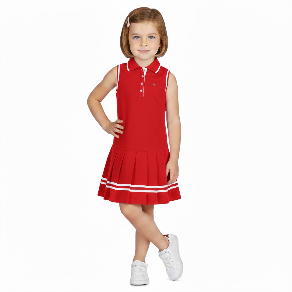 •   Vestido Tommy Hilfiger modelo com gola polo e sem mangas com fechamento por botões na parte da frente, feito em malha piquet com o toque do suave de algodão