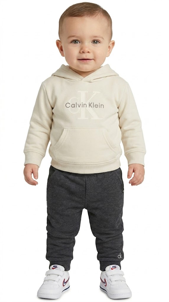 Este conjunto bebê da Calvin Klein é ideal para o conforto diário dos pequenos, trazendo estilo e praticidade. A blusa de moletom com fleece, Capuz apresenta o logo "CK" estampado, enquanto a calça jogger, de tom escuro, oferece o ajuste perfeito com cós elástico e punhos canelados, garantindo conforto e mobilidade. A combinação do capuz e o tecido macio oferece aquecimento, sendo ideal para as temporadas mais frias.