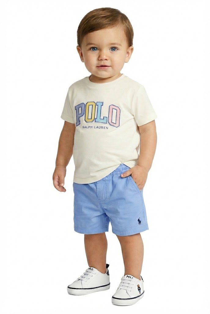 Conjunto Polo Ralph Lauren para bebê, ideal para compor um look arrumadinho, sofisticado e confortável, com o padrão de qualidade e elegância de uma marca premium internacional. Perfeito para passeios, ocasiões especiais e produções casuais refinadas.