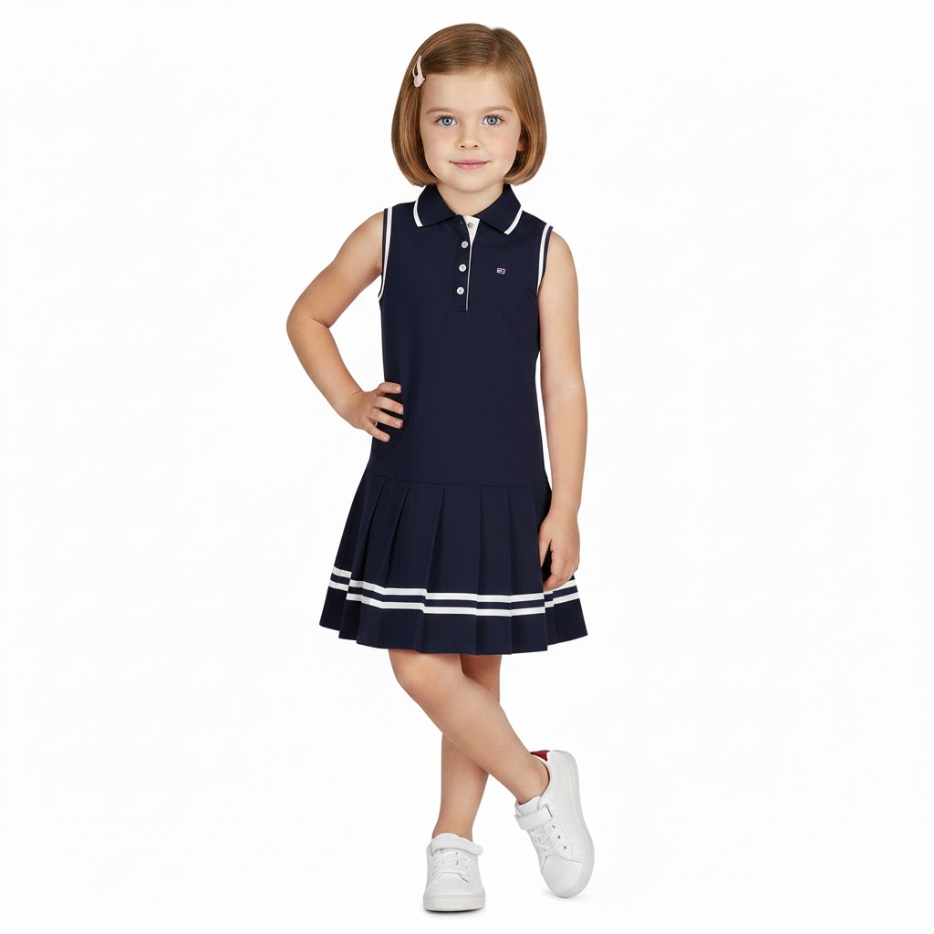 • Vestido Tommy Hilfiger modelo com gola polo e sem mangas com fechamento por botões na parte da frente, feito em malha piquet com o toque do suave de algodão
