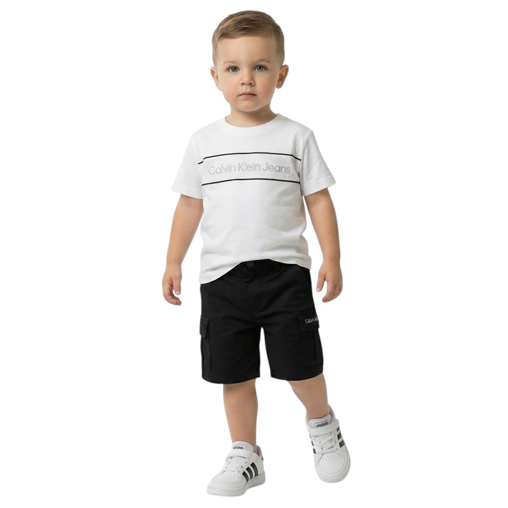 Conjunto Infantil Calvin Klein Camiseta Bermuda Cargo Preta