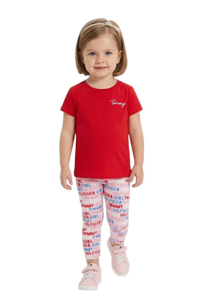 Conjunto infantil feminino composto por camiseta baby luke e legging, ideal para compor looks confortáveis e modernos. A camiseta é confeccionada em malha macia na cor vermelha, com mangas curtas e logo Tommy bordado no peito. A legging possui estampa corrida com escrita “Tommy Hilfiger Girl”, modelagem ajustada e tecido confortável, proporcionando liberdade de movimentos. Conjunto com ótimo caimento e acabamento de qualidade, ideal para compor looks arrumadinhos sem abrir mão do conforto.