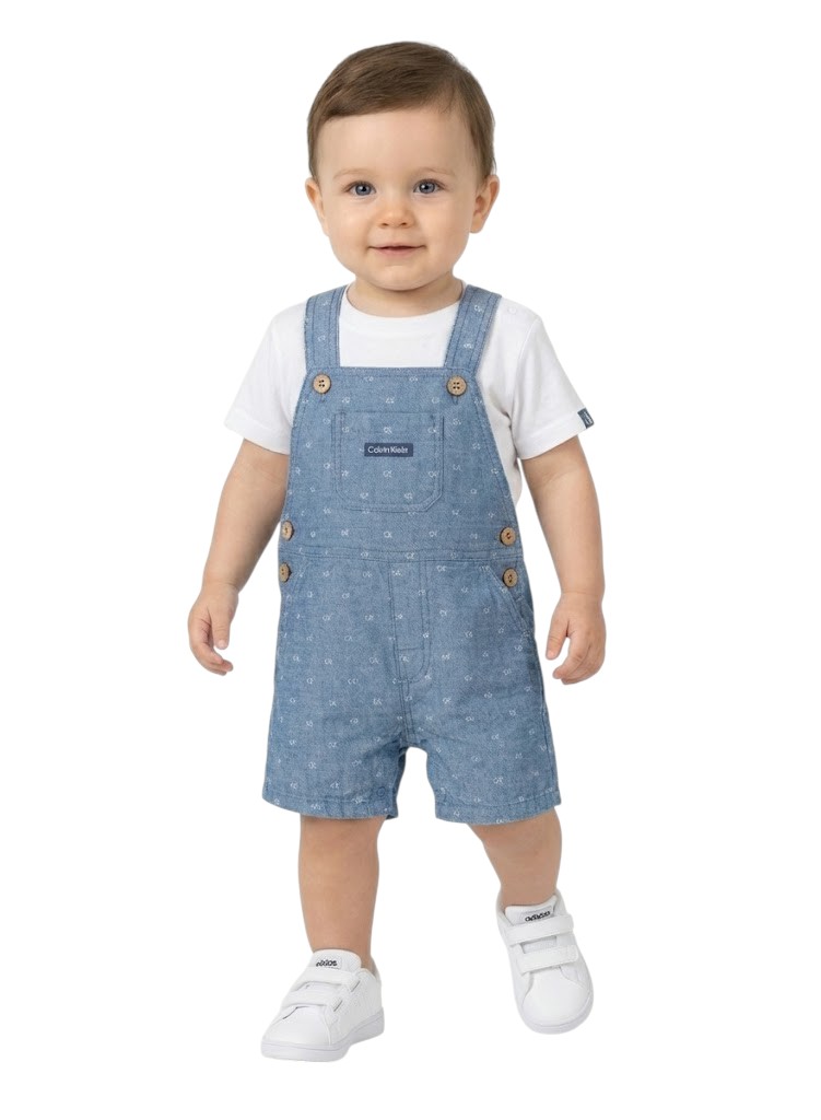 Jardineira com camiseta estilo confortável, fecho de pressão com uma camiseta de gola redonda macia.