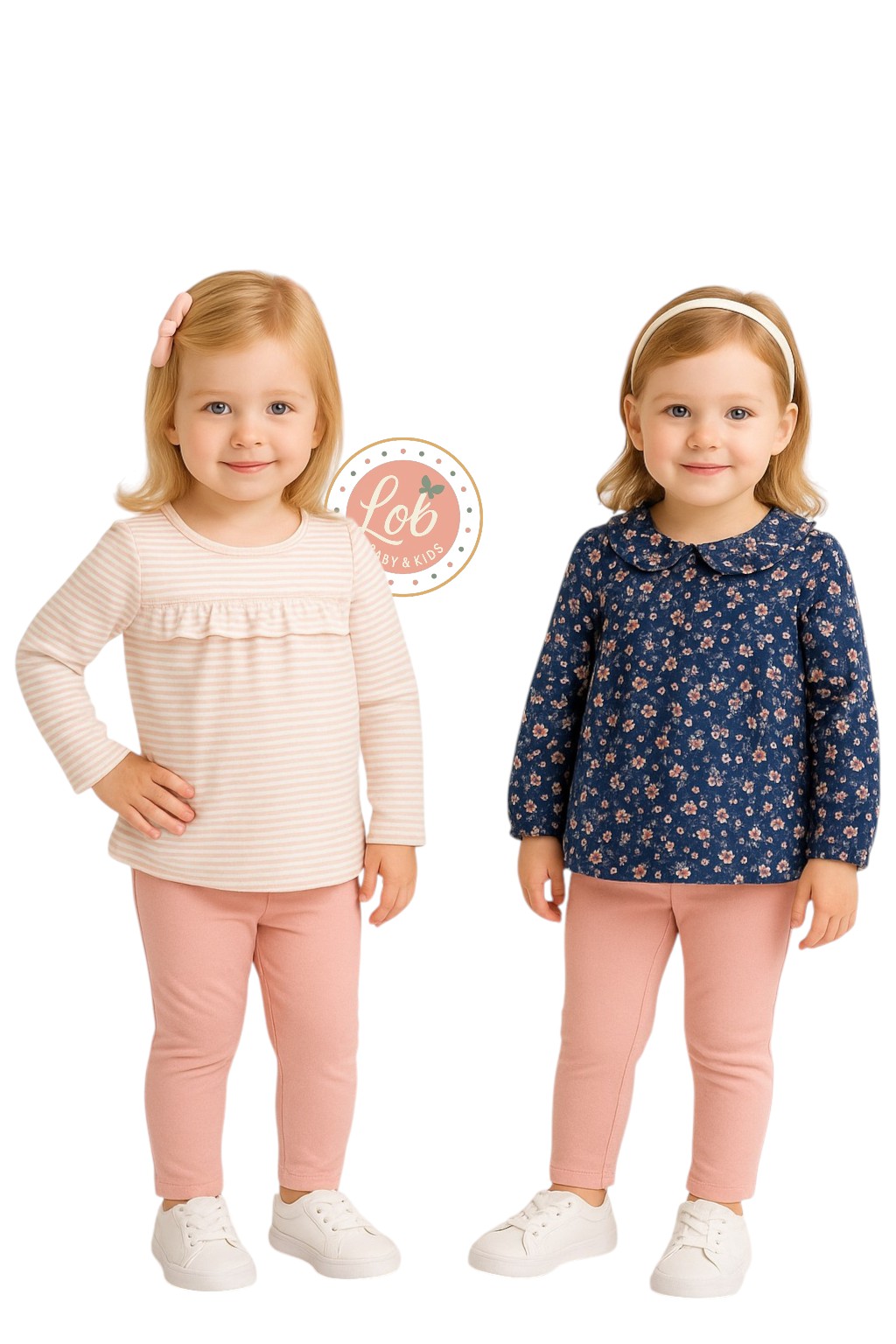 📌 Composição: Blusas manga longa: 100% Algodão | Legging: 95% Algodão e 5% Elastano