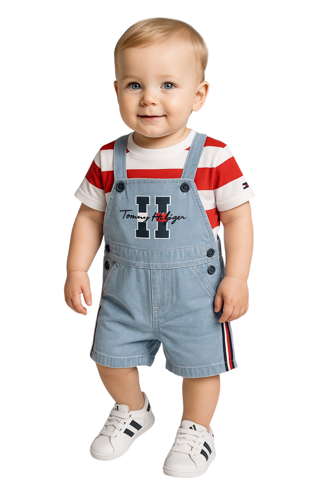 • Jardineira com camiseta em malha com estampa do logo Tommy Hilfiger inclui uma camiseta e jardineira