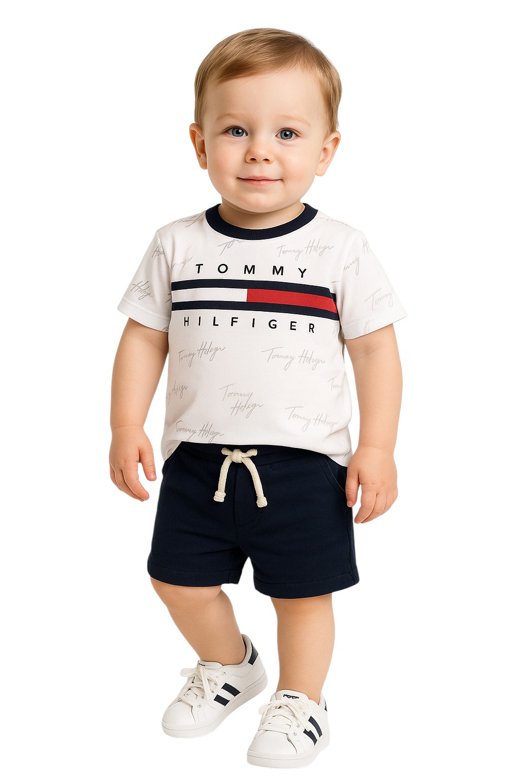 Conjunto Infantil Tommy Hilfiger - combina estilo, conforto e autenticidade para os pequenos. Ideal para o dia a dia, ele é composto por duas peças essenciais para o guarda-roupa infantil: uma camiseta moderna e um shorts prático, ambos com o clássico toque da marca.