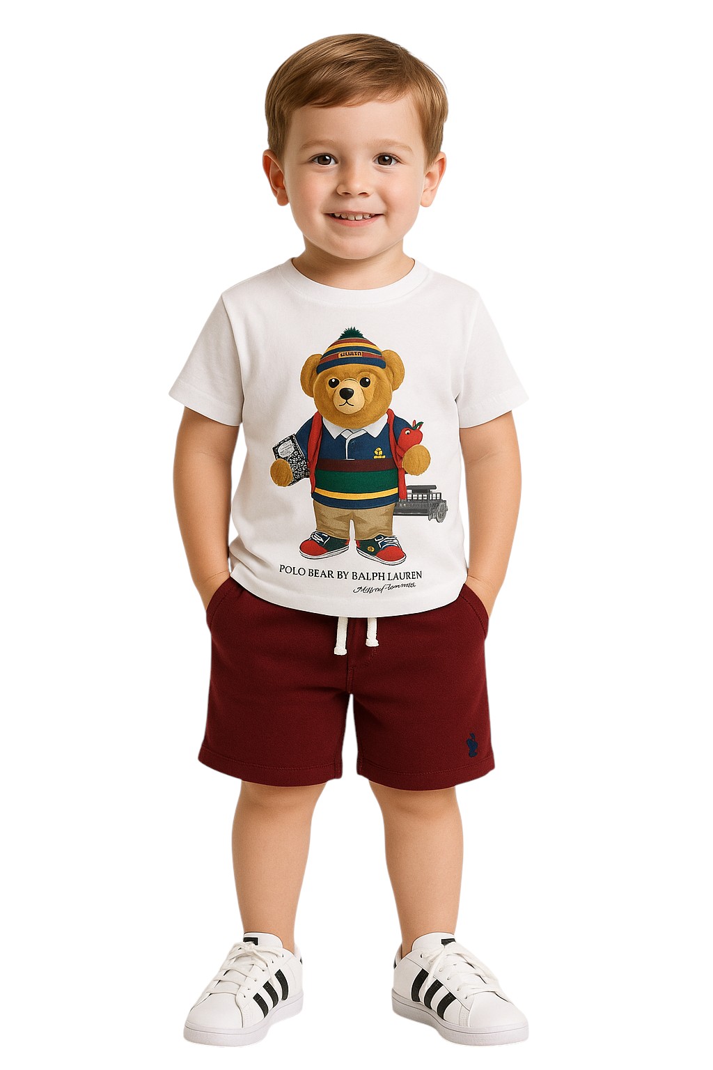 • Shorts Polo Ralp Lauren em moletom bordô, elástico na cintura  com cordão, dois bolsinhos lateral  Poney bordado na perna
